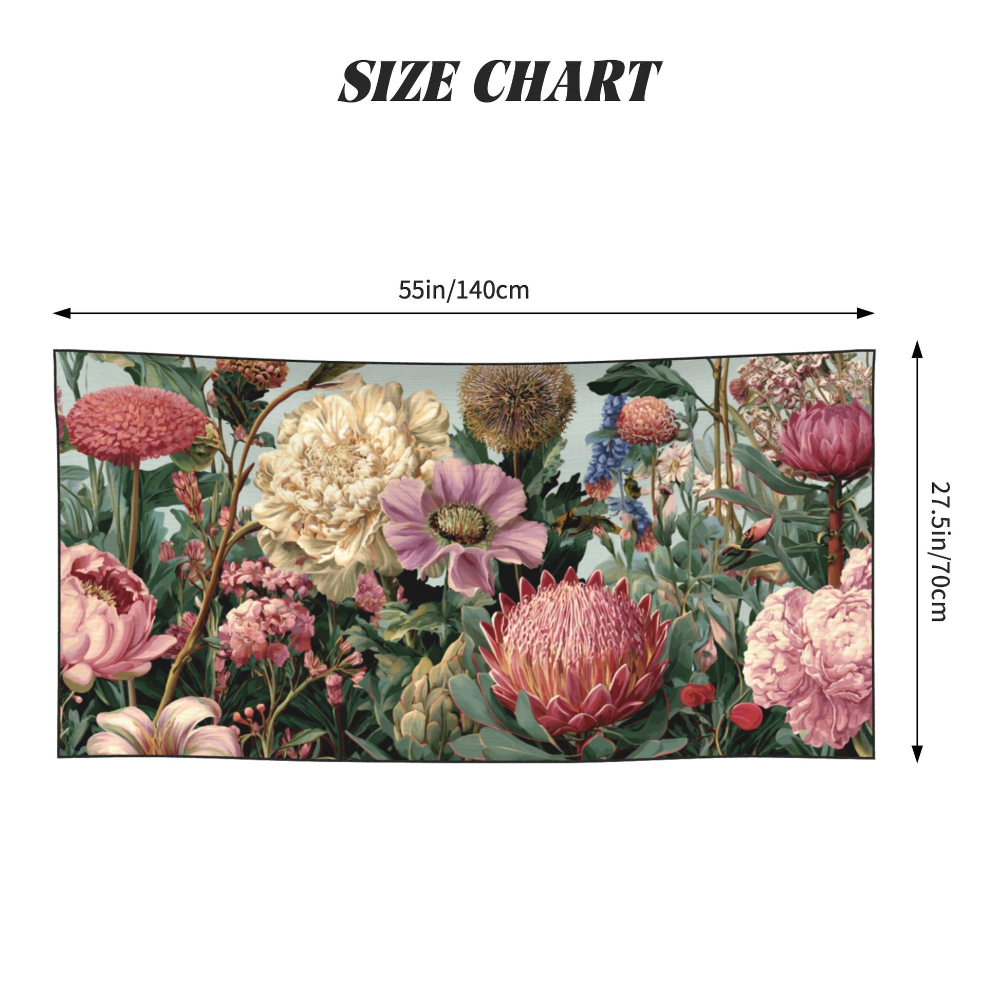 Measuring 55 × 27.5 inches (140 × 70 cm), it provides ample coverage for relaxing, sunbathing, or drying off after a swim. The vivid botanical print features lush, artistic flowers in full bloom, adding a vintage charm and natural touch to your summer essentials.