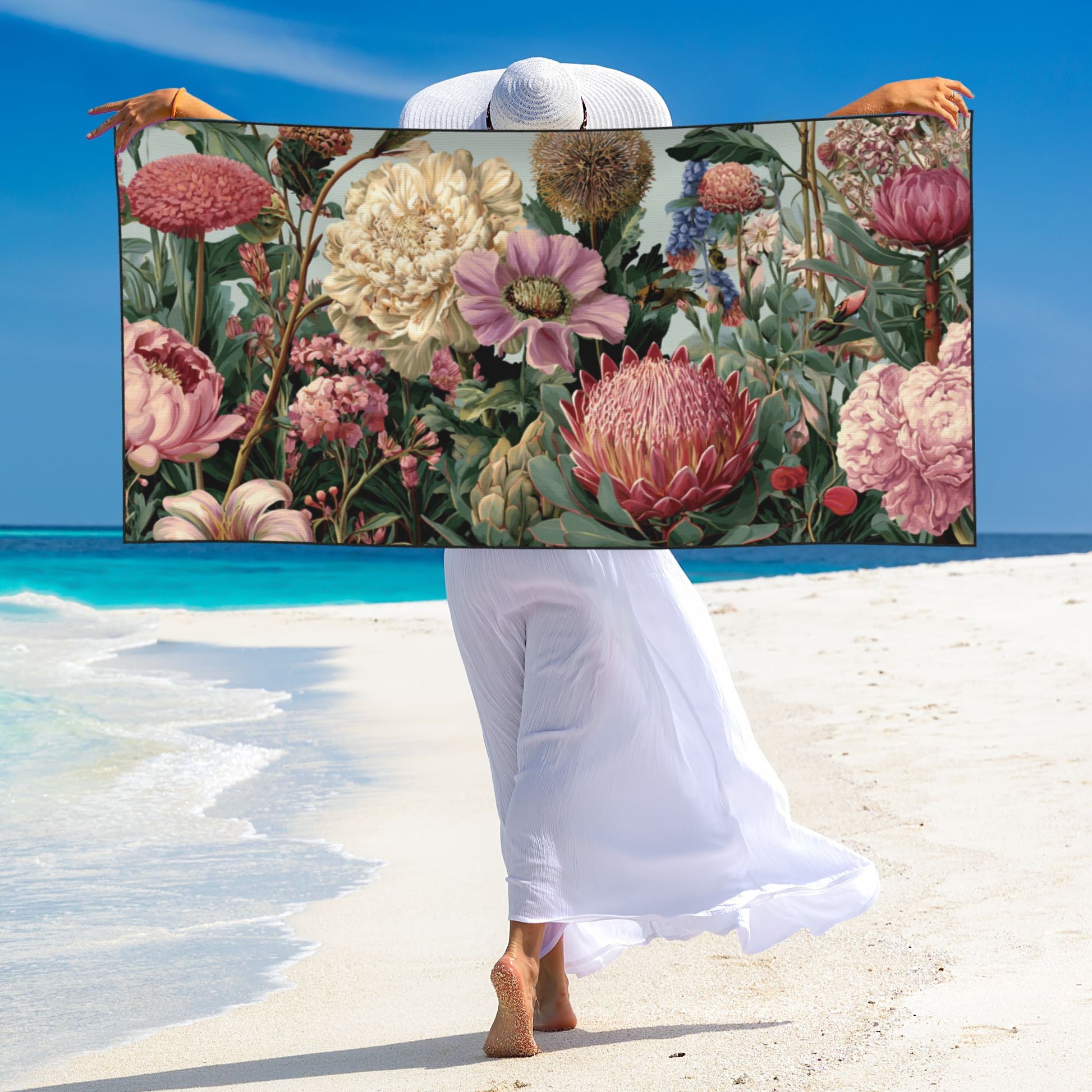 Floral Peach Skin Beach Towel 55×27.5in – Soft, Lightweight, Quick-Dry Multi-Purpose Towel