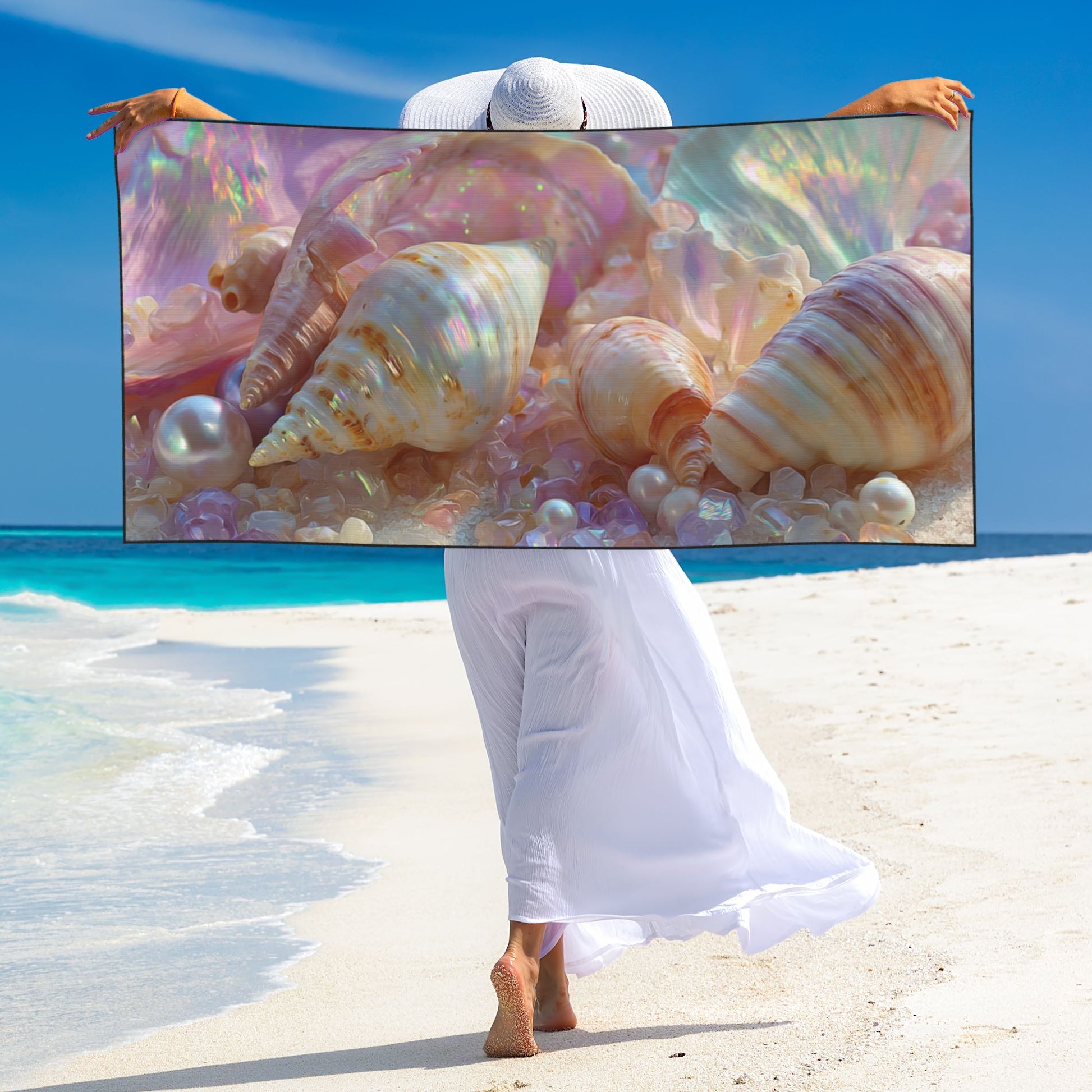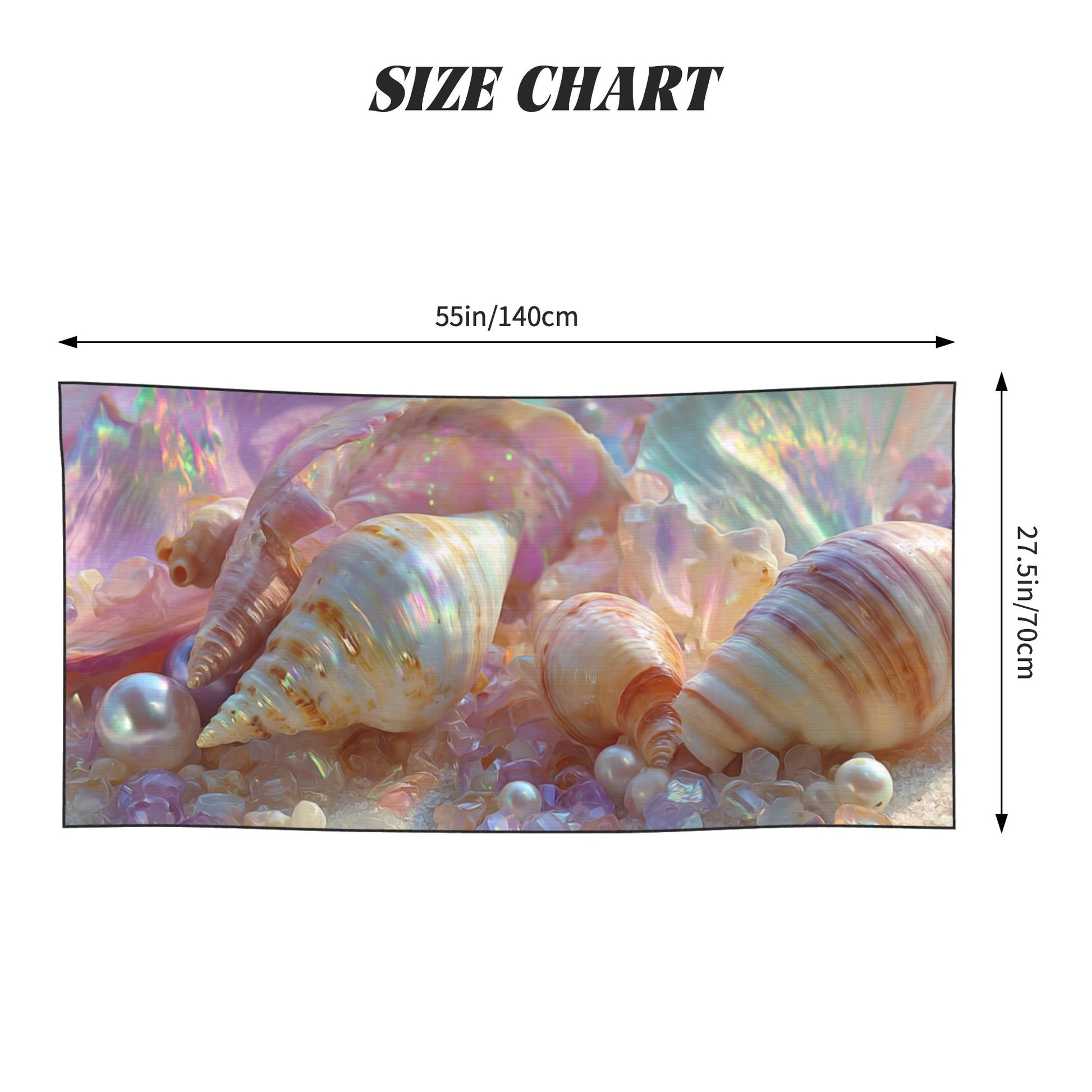 Indulge in beachside elegance with this iridescent seashell and pearl beach towel, designed to bring a dreamy coastal vibe wherever you go. Measuring 55 × 27.5 inches (140 × 70 cm), this towel provides full-body coverage and exceptional comfort, ideal for the beach, pool, gym, or travel.