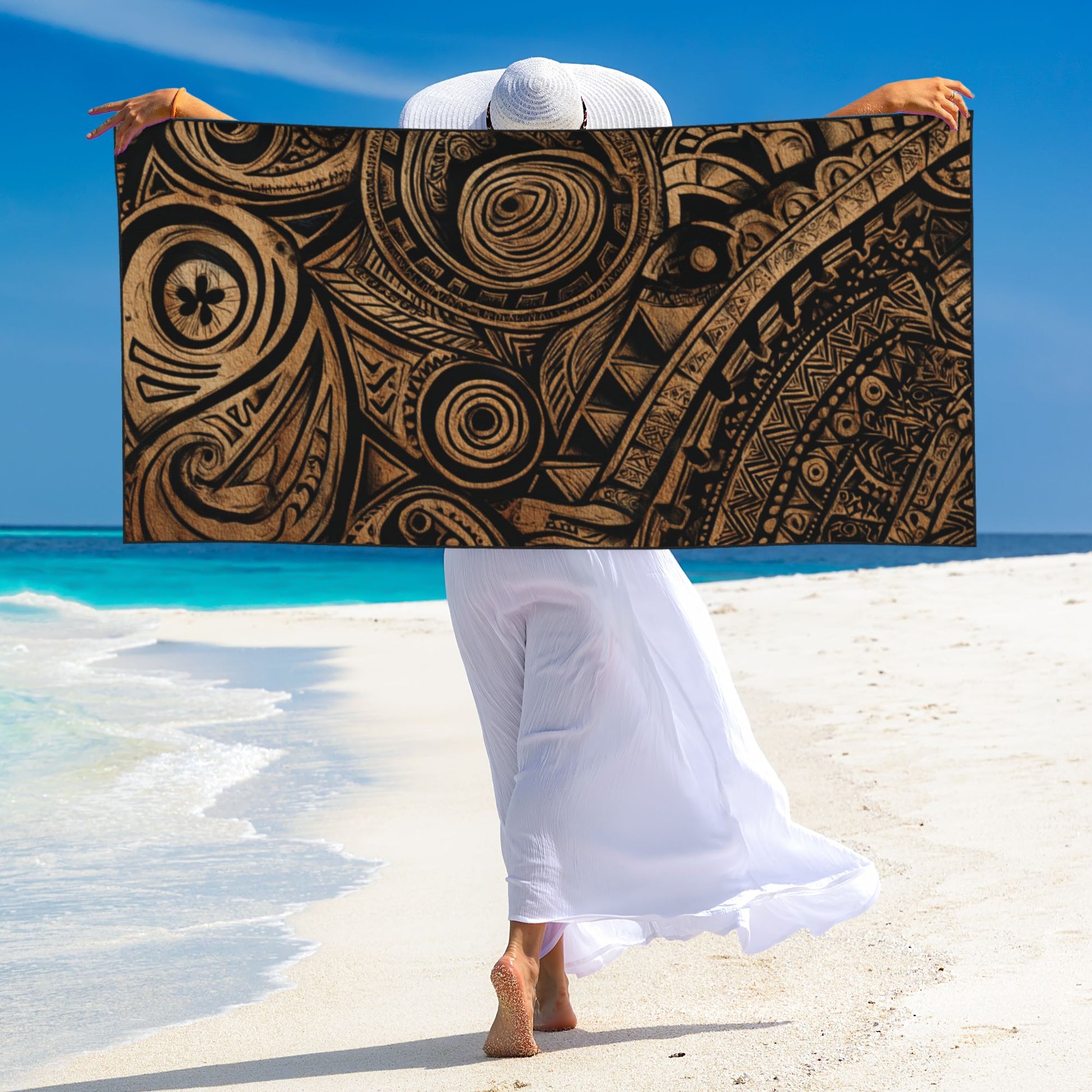 Tribal Gold & Black Peach Skin Beach Towel – 55×27.5in Soft, Quick-Dry, Multi-Purpose Outdoor Blanket